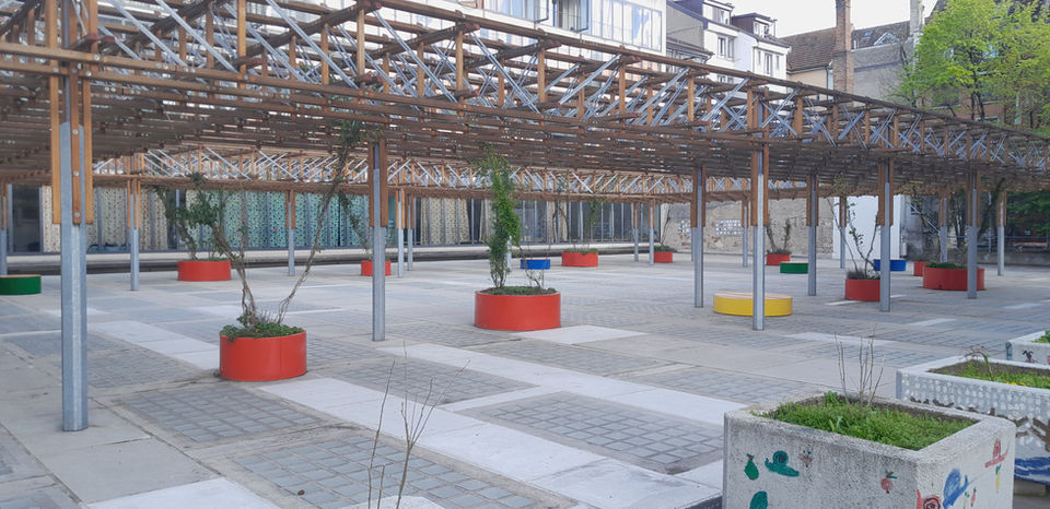 2016 zieht Werk-Stoff mit der Werkstatt nach Basel an die Schlossgasse. Hier wird durch den Einbau eines Pelletofens das Heizen der Werkstatt möglich. Endlich 15 Grad im Winter! Das Büro ist selbst gebaut aus alten Fenstern und erhält einen kleinen Kanonenofen. 90 % Wiederverwendung! Auf dem Dach der Werkstatt entsteht ein Gemüsegarten auf Vereinsbasis. Die Vereinsmitglieder bauen ihr Hochbeet aus alten Gerüstläden selbst. Zur Imprägnierung der Bretter gegen Verfaulen verwenden wir altes Fischöl aus Basler Beizen. Das Werkstattdach wird zu einem Treffpunkt im Quartier mit Gemüsegarten.